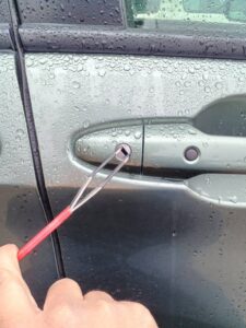 このタイプの車はカギが無い状態でカギ穴を回すと斜めの位置で穴が固定されて