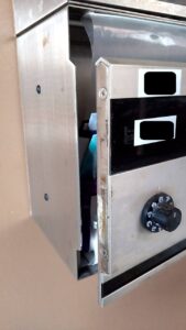 カギの無いキャビネットにカギを取付けたいとの事で、扉に補助錠を取付けました。