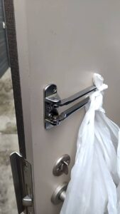 ドアガードのアーム部分に何かぶら下げていた物が作業して閉まったものと
