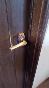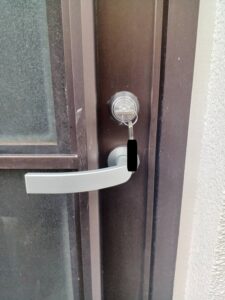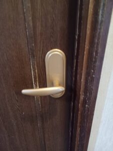 お客様が後付けしたスマートロックは使用したいとの事で、サムラッチから円筒錠へ