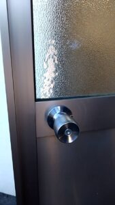 勝手口は両面カギの円筒錠に交換しました。